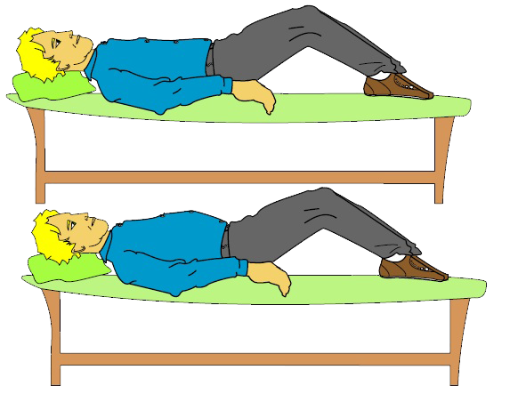 Tumbarse boca arriba con una almohada bajo la cabeza y las lumbares. Dejar los brazos relajados a los lados. Respirar profunda y lentamente imaginando que el abdomen es un globo que se hincha y se deshincha. Repetir la respiración. Mantener el pecho elevado apoyando la parte superior de la cabeza.